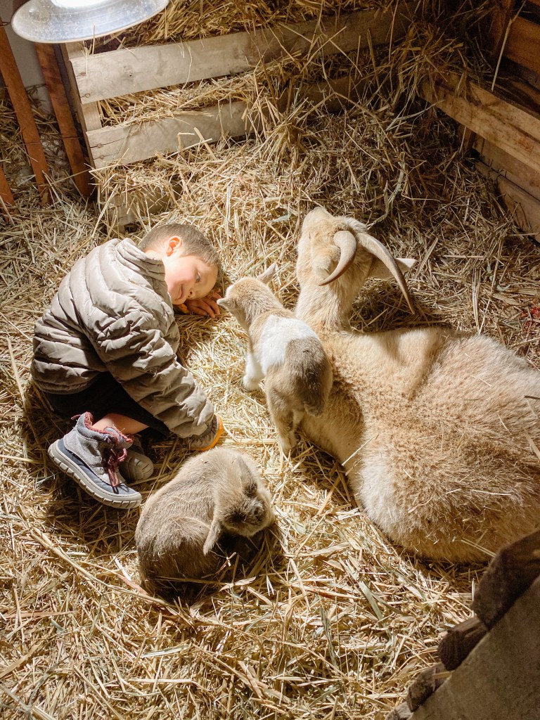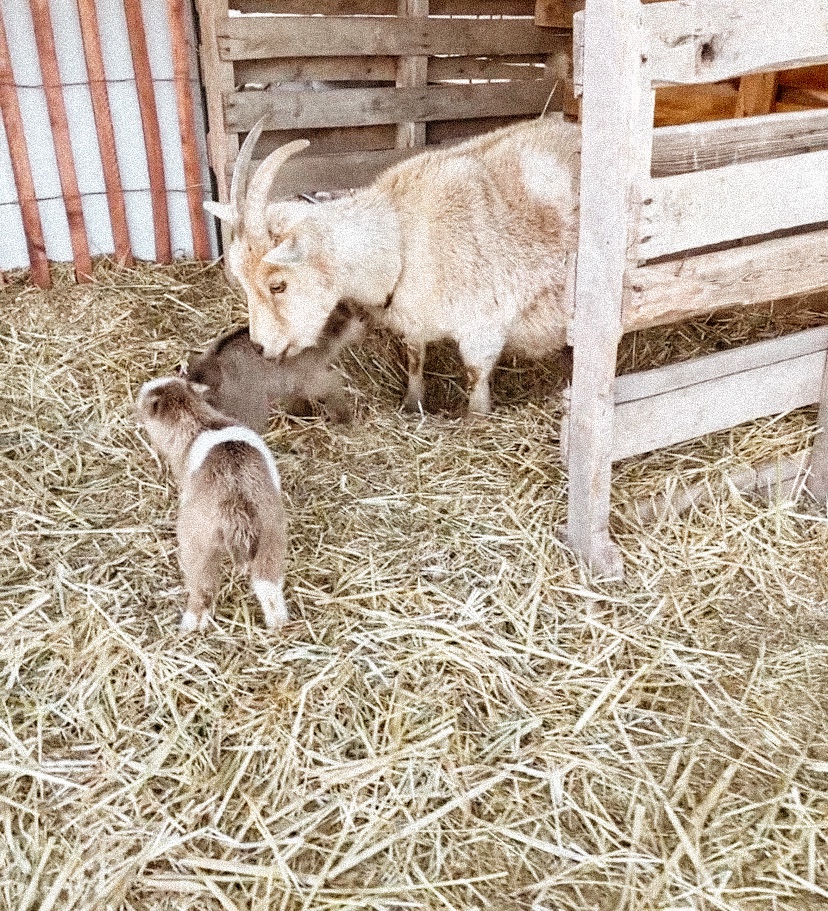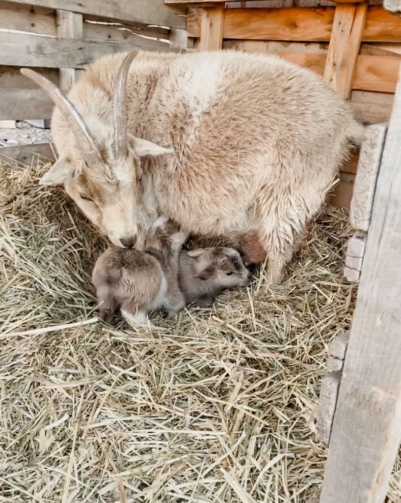 Two weeks ago we came home after a day out to hear the tiniest “baa”s- one of our goats had had her babies! Josephine had given birth to twins all on her own! We held the tiny babies and petted Jo in admiration and dropped everything else to make their shelter warm for the January night.