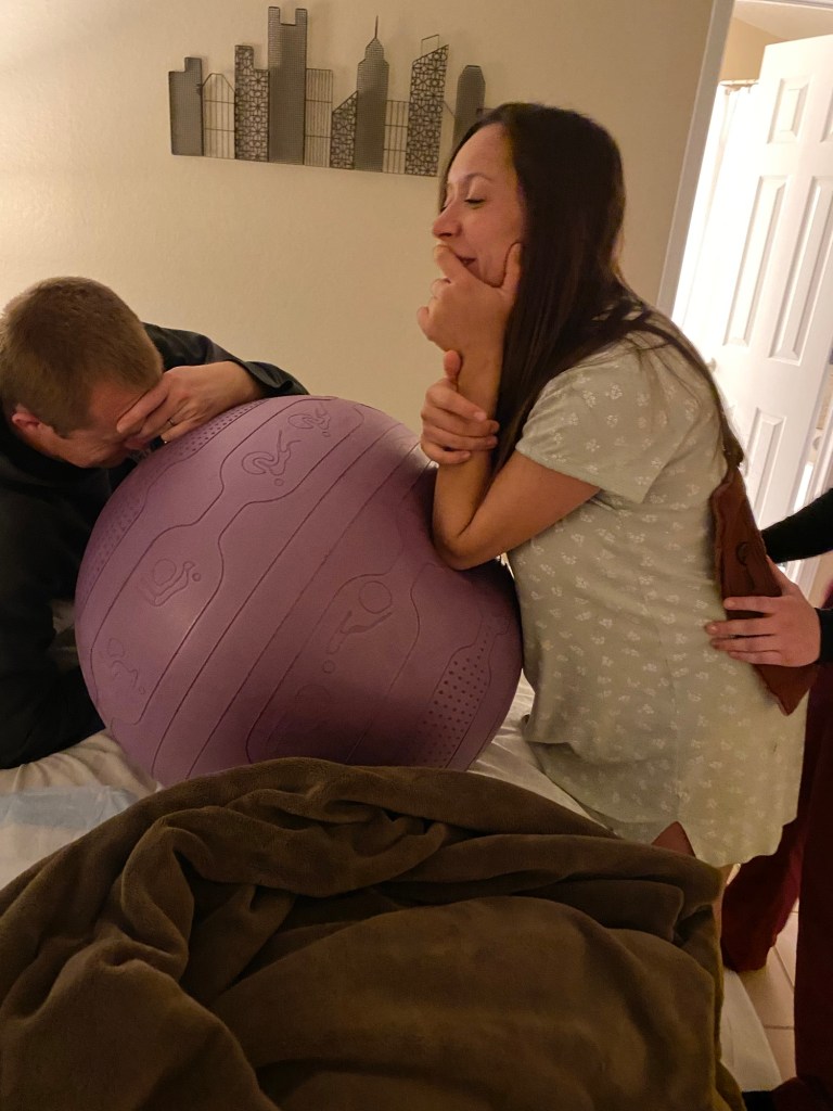 I felt like I needed so much support when in active labor. I can be easily overwhelmed by a lot of people/socialization, so I wasn’t sure how I’d be while laboring. I thought I might want to be alone a lot, but I didn’t at all, I just wanted to be supported in every way- held, touched, a hand to hold or squeeze, someone to talk to me, someone to pray over me. I was also very bossy. I just told everyone what to do- “Back squeeze now please.” “Babe, hand!” “Tell me to release.” “Cover me up.” “No blanket, no blanket!” I asked my sister-in-law to change because she smelled like perfume.