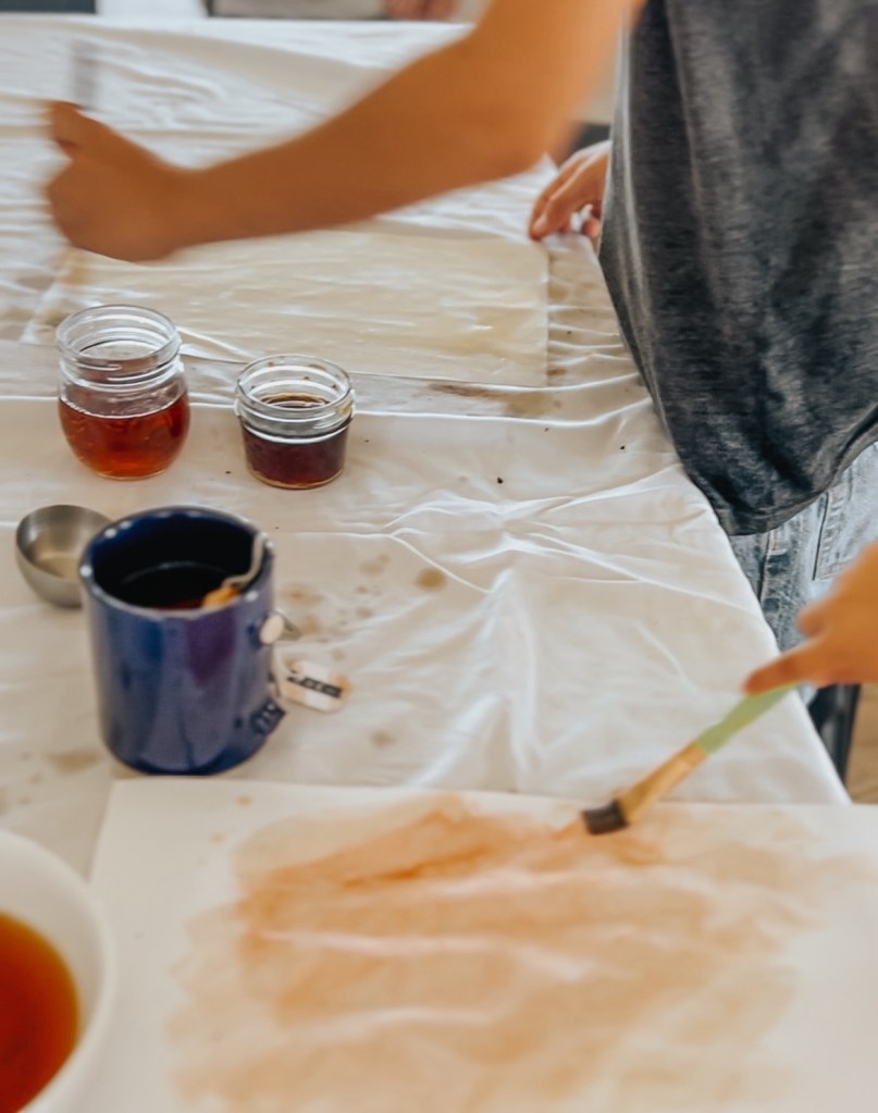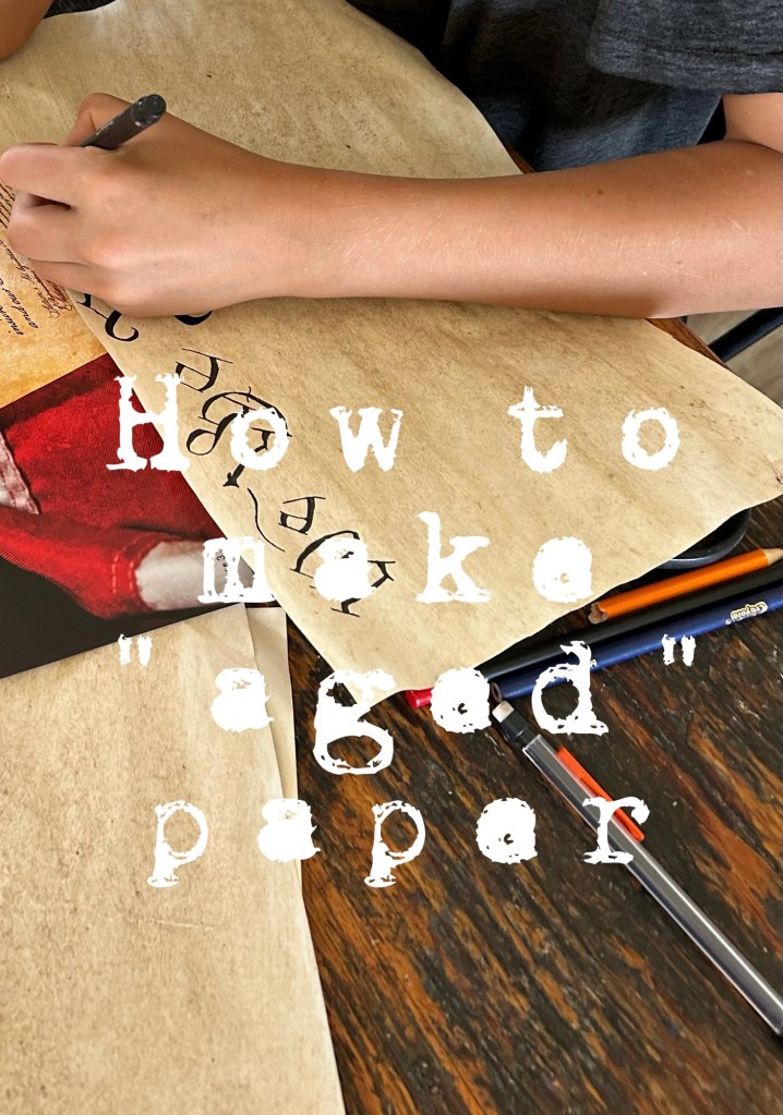 They needed paper fit for the task, obviously, which led us to experiment in creating some aged-looking paper. This is a super simple and fun homeschool or summer craft for all ages!