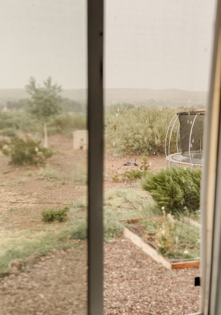 A cool day in September. Lung-filling breaths. Finished tasks. The fact that headaches don’t last forever. A mother hen’s instincts to cover her chicks. Warm, snuggly, napping babies and toddlers. Rain in the desert.
