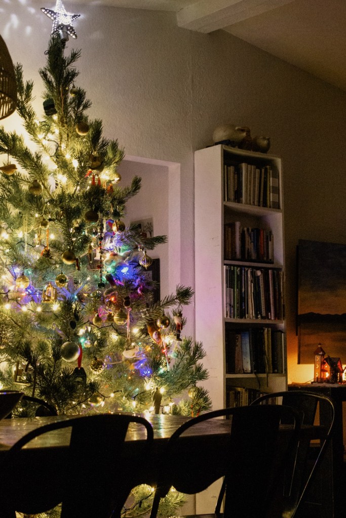 So we did. We found all the best light displays in town, sipped herbal tea, made up our own little scavenger hunt list of things to find in the displays (star, grinch, snowman, reindeer, etc.) and had a fun time while we let our house air out.